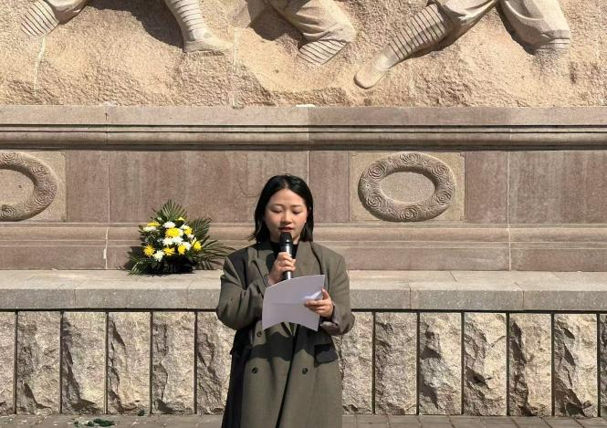 工会主席齐学民在致辞中向长眠于此的先烈致以最崇高的敬意,他表示山电全体教职工将把对革命先烈的缅怀之情化作奋进力量。退休老教师于钦良为现场教职工讲述革命烈士的英雄事迹。马克思主义学院青年教师代表张艳贺在发言中表示,广大青年教师将以此次活动为契机,在缅怀先烈的过程中筑牢理想信念之基,在传承红色基因的道路上强化使命担当,努力为教育事业贡献自己的力量。随后,教职工们手持鲜花,缓步走向纪念碑敬献。教职工们参观了章丘籍烈士英名碑刻和章丘烈士墓志铭。在盛习友烈士纪念碑前,数字财经学院团总支书记颜晓辰为现场教职工讲述盛习友烈士的英勇事迹,让大家对这位革命先烈有了更深刻的认识。