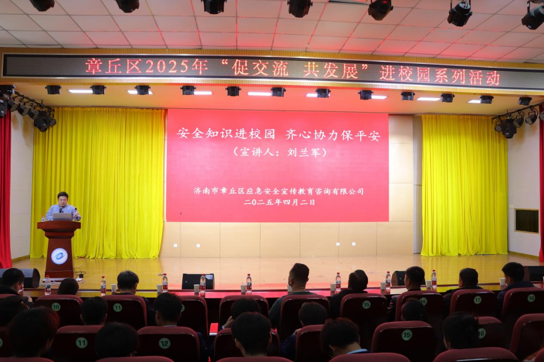 近日,由“e安家园”一站式学生社区主办的“校外导师进社区”暨章丘区2025年“促交流 共发展”进校园系列活动在我校成功举行。活动特邀章丘区应急管理局安全专家、我校校外导师刘兰军担任主讲,学生工作处、安全保卫处及各学院师生代表齐聚一堂,共同聆听了一堂生动深刻的安全教育课。