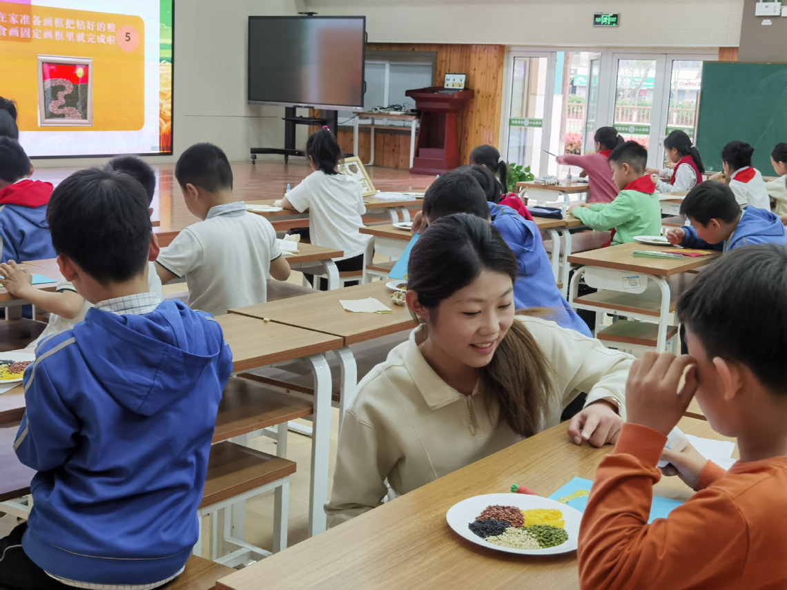 盛和小学二年级延时课负责人李老师评价道:“课程用生动的黄河故事触动学生心灵,既丰富了课后服务内容,又让学生在劳动中学习传统文化,增强环保意识与爱国情怀。”她指出,通过黄河故事讲述与粮画制作,学生深化了对黄河文化的理解,课后主动表达出珍惜粮食、热爱母亲河的真挚情感。