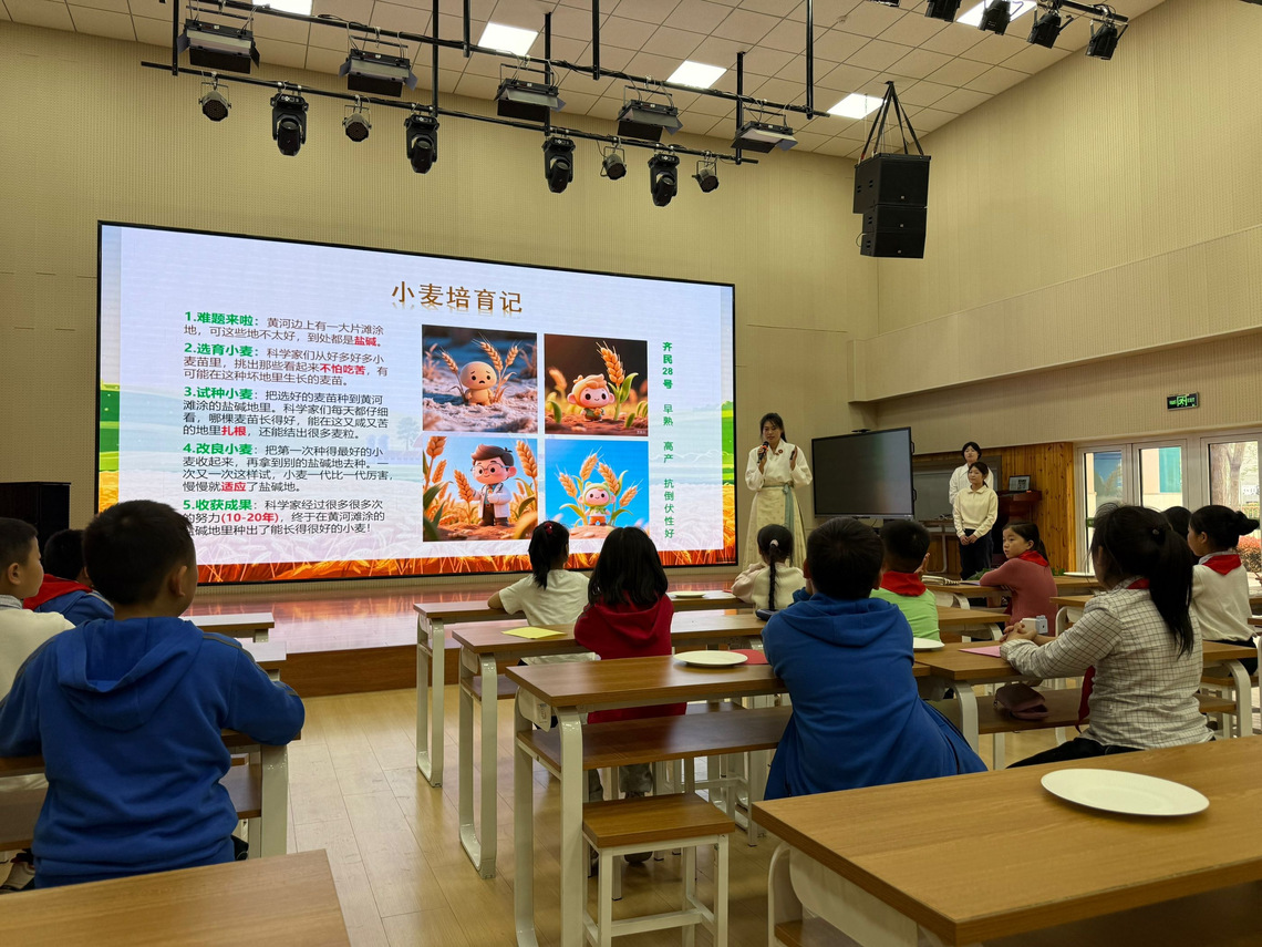 传承黄河非遗文化,点亮劳动教育之光。4月11日,数字创意学院晏丰公益项目团队走进济南市历下区盛和小学,为二年级学生带来劳动教育课程——《艺麦相承》。该课程是《融合黄河非遗文化打造新型劳动教育课程》项目的“大师金课”系列之一,通过融合黄河非遗文化与劳动实践,让孩子们在动手操作中感悟传统文化,培养珍惜粮食的意识,养成热爱劳动的品质。