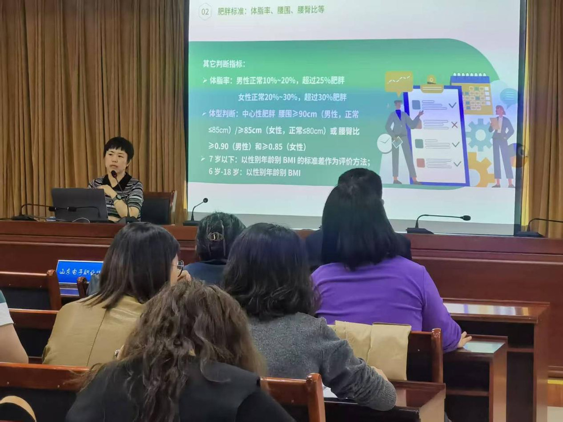 为提升我校师生健康意识和生活素养,4月15日下午,学校工会联合继续教育培训部在办公楼222会议室举办“守护健康 点亮生活--公益大讲堂”专题讲座活动。此次活动在热心校友的大力协助下,特邀山东大学第二医院的两位权威健康专家—— 国家注册营养师、健康管理师王伟伟和医学博士、主治医师岳彩宾担任主讲嘉宾,学校百余名师生参加活动。