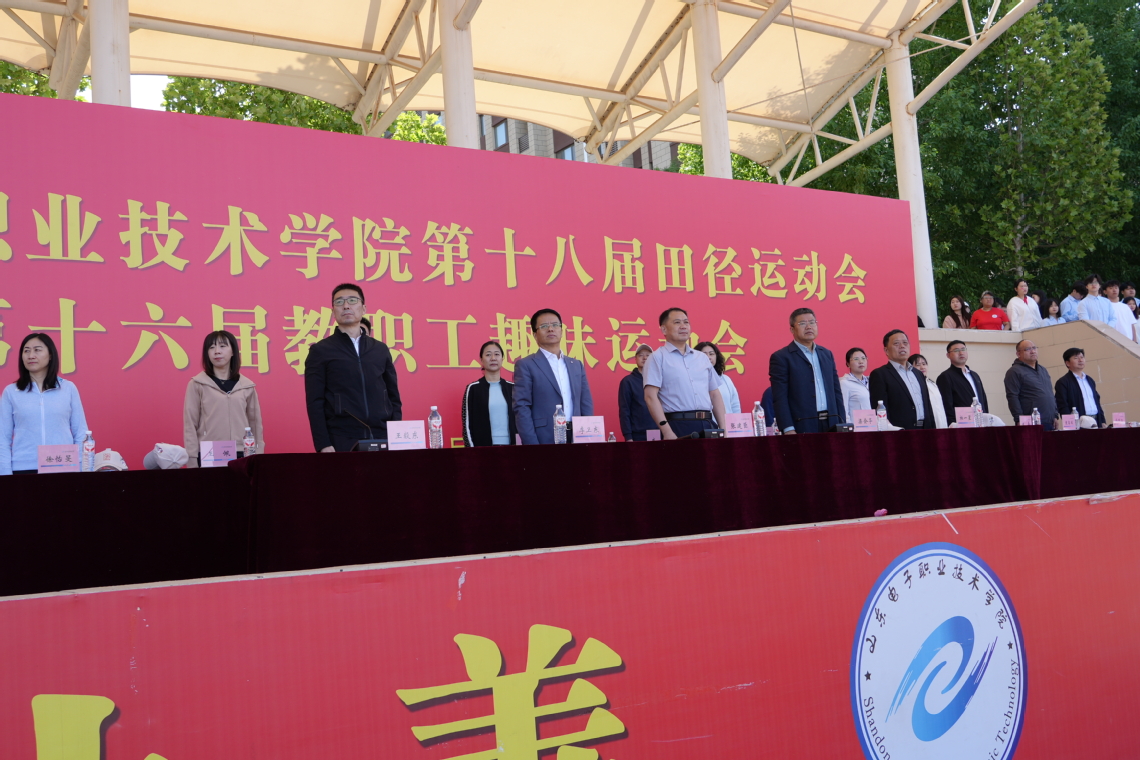 青春飞扬展风采,逐梦赛场竞风流。4月24日上午,山东电子职业技术学院第十八届田径运动会暨第十六届教职工趣味运动会在学校体育场盛大开幕。学校领导班子成员、各院部及部门负责人与师生代表共赴一年一度的体育盛事。开幕式由副院长王毅东主持。