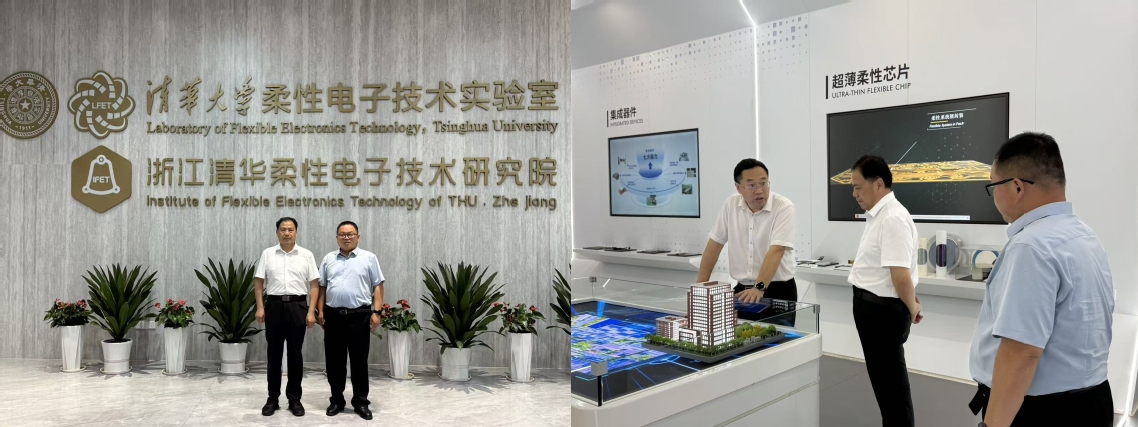 随后,驱车前往浙江清华柔性电子技术研究院。研究院副院长陈鑫对张建臣一行的到来表示欢迎。他从研究院概况、发展定位和目标、组织构架和队伍建设、研发平台主攻方向、取得的成效等方面作了详细的介绍。张建臣介绍了学校发展历史、办学特色、师资队伍、科研成果、人才培养成效等情况,表达了与浙江清华柔性电子技术研究院在人才培养、项目申报、科研成果转化、高能级平台建设等方面深化合作的愿望。