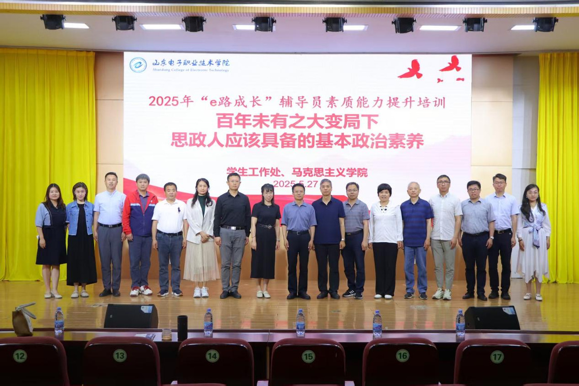 为全面提升育人质量,推动思想政治教育工作创新发展,5月27日下午,我校特邀济南大学马克思主义学院李朋忠教授作《百年未有之大变局下思政人应具备的基本政治素养》专题讲座。山东工程职业技术大学马克思主义学院院长张娜及该院教师代表受邀参加,山东电子职业技术学院副院长李卫东出席活动,学生工作处、马克思主义学院负责人及全体教师,各二级学院学工干部、辅导员、班主任代表参加培训。