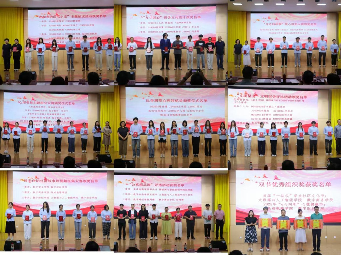 作为“双节”活动的主办单位,学生工作处在总结致辞中提到,在各系部的大力支持和协作下,本次双节开辟了“社区+心理”双轮驱动的育人新模式,构建了线上线下相结合的参与平台,以及形成了“知行合一”的教育闭环等创新实践。同时,以此次活动为起点,对广大同学提出了三点期望:第一,要做温暖社区的共建者,继续培育崇德向善的宿舍文化;第二,要做心理健康的守护者,让“e心向阳”成为每个人的生活态度;第三,要做青春梦想的践行者,在创新实践中淬炼过硬本领。