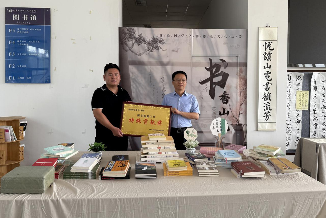 学校向积极参与捐赠的校友代表颁发了荣誉证书。校企合作单位代表杨勇先生因贡献突出,被授予“图书捐赠工作特殊贡献奖”。