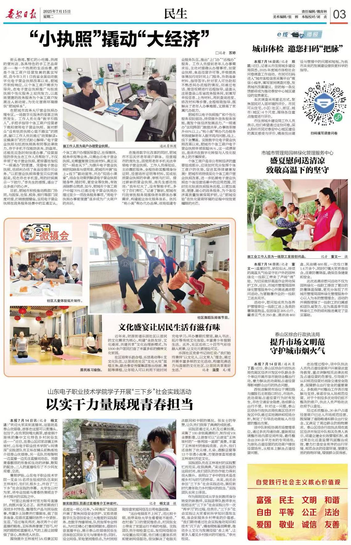 【泰安日报】山电学子开展“三下乡”社会实践活动