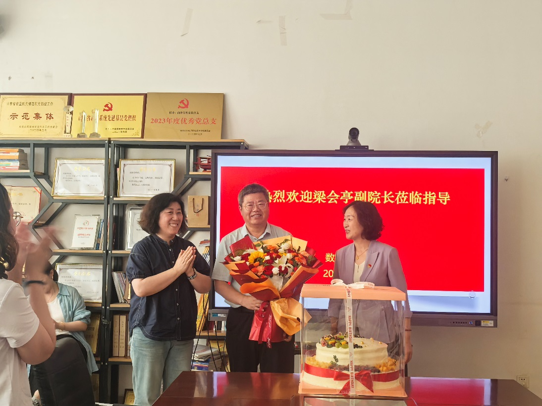 值梁会亭副院长即将退休之际,商务管理系特备鲜花与蛋糕,表达了崇高敬意与真挚祝福。现场掌声不断,气氛温馨感人。