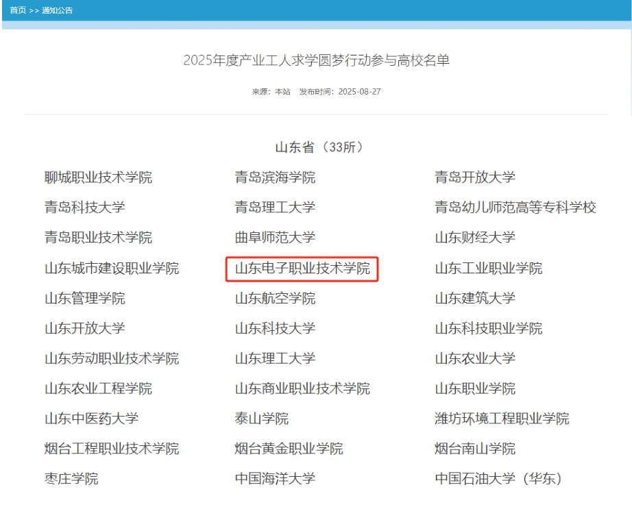 8月27日,教育部职业教育与成人教育司通过全国高等继续教育信息管理系统公布了“2025年度产业工人求学圆梦行动参与高校名单”,我校成功入选。