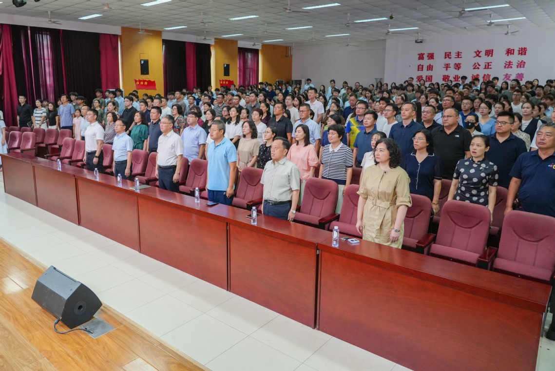 上午9时整,纪念大会正式开始,与会人员通过大屏幕实时收看了大会盛况。伴随着高亢雄壮的国歌声,现场人员全体肃立,齐声高唱国歌。随后,认真聆听了习近平总书记发表的重要讲话,重温中华民族抗战岁月的艰难曲折与伟大胜利,深刻感悟革命先辈坚定的理想信念和深厚的爱国主义情怀。