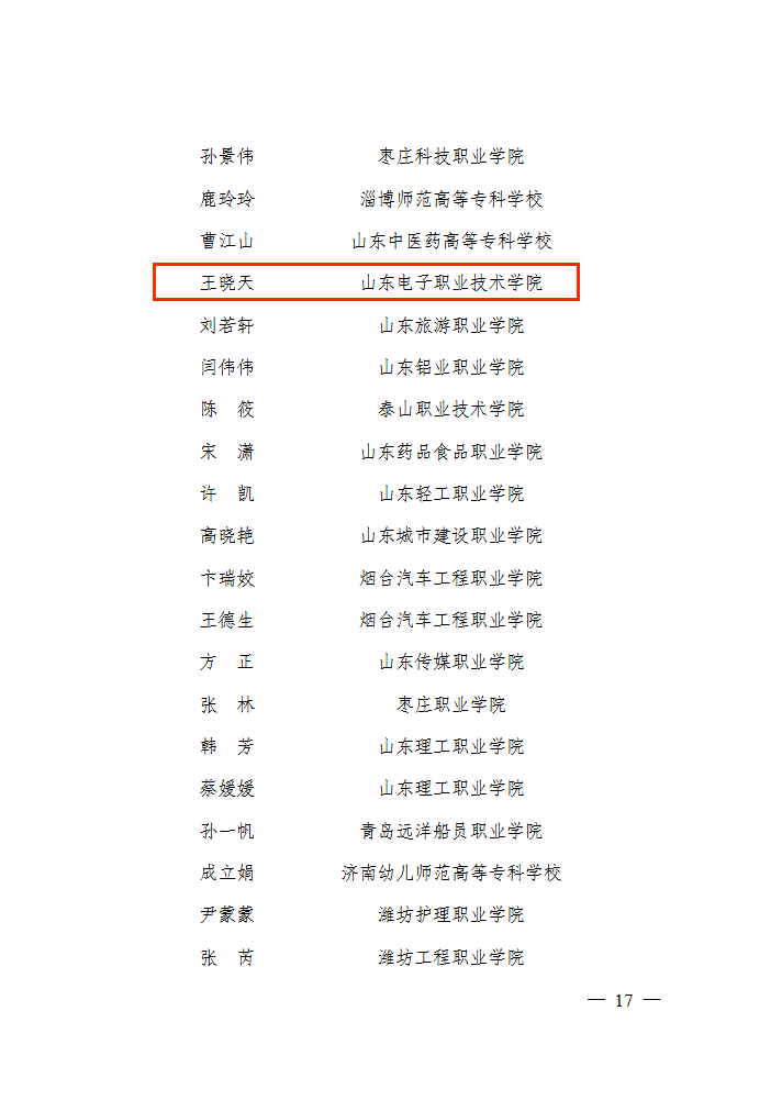 近日,中共山东省委教育工委公布2024年度“山东学校思政课教师年度人物”评选结果,我校智能制造工程系党总支副书记王晓天老师荣获2024年“山东高校优秀辅导员”称号。