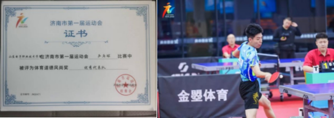 9月9日至11日,济南市第一届运动会乒乓球比赛(驻济高校大学生组)在金牛体育健康城金曌乒乓球馆举行。我校参赛选手由王健、袁明波老师带队,参加了男女团体、单打、双打和混合双打全部七个项目的角逐。经过激烈比赛,最终获得女子团体第四名、男子团体第八名的成绩,并荣获体育道德风尚奖。