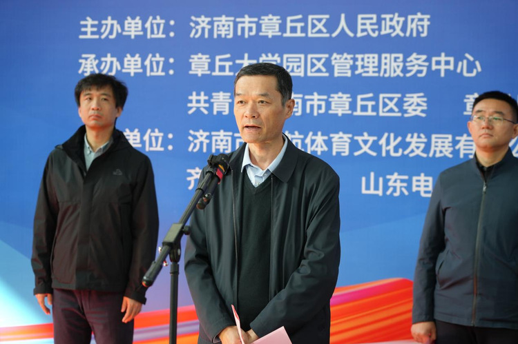 朱陆益在致辞中说本次篮球联赛,既是响应党的二十大“广泛开展全民健身活动,加强青少年体育工作”号召的具体实践,更是深化驻章高校文化交流、推动体教融合发展的重要平台。希望各驻章高校以本次联赛为契机,进一步深化交流合作,把赛场上的拼搏精神转化为育人兴校、服务地方的强大动力,为校园体育高质量发展注入新动能,为校地合作共建再添新活力,为章丘高质量发展凝聚青春力量。