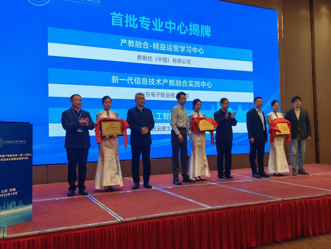2025年10月30日,山东省省会经济圈产教联合体一届二次会议暨产教联合体实体化创新发展研讨会在济南顺利召开。本次会议以“深化产教融合・赋能区域发展——推动省会经济圈产教联合体实体化创新运行”为主题,由山东省省会经济圈产教联合体主办,济南市教育局等多家单位共同承办。省教育厅相关领导、省会经济圈七市教育部门负责人,以及来自近200所高校、龙头企业和科研机构等单位代表齐聚一堂,围绕区域产教协同发展的重要议题深入交流,共同谋划合作新路径,擘画发展新蓝图。我校张建臣院长率队参会。