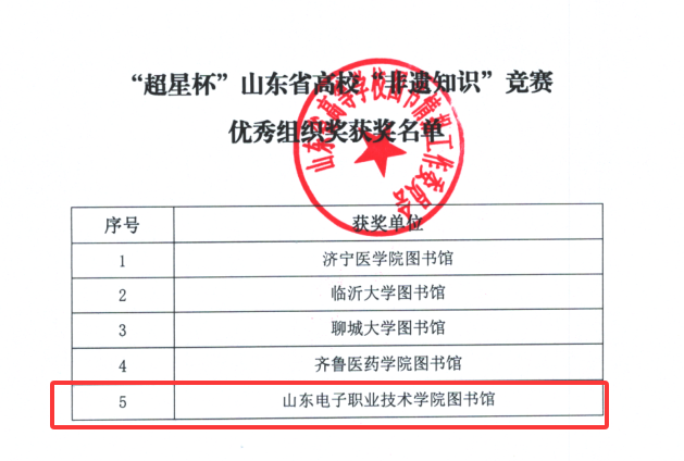 近日,由山东省高等学校图书情报工作委员会主办的“超星杯” 山东省高校“非遗知识”竞赛圆满落幕。本次竞赛吸引全省 90 余所高校的 11000 余名学子参与竞技,我校图书馆高度重视,精心组织、广泛动员,共组织 1926 名在校学生参与竞赛,凭借出色表现斩获多项荣誉——学生个人获一等奖 1 项、三等奖 2 项、优秀奖 2 项,我校图书馆获评“优秀组织奖”。