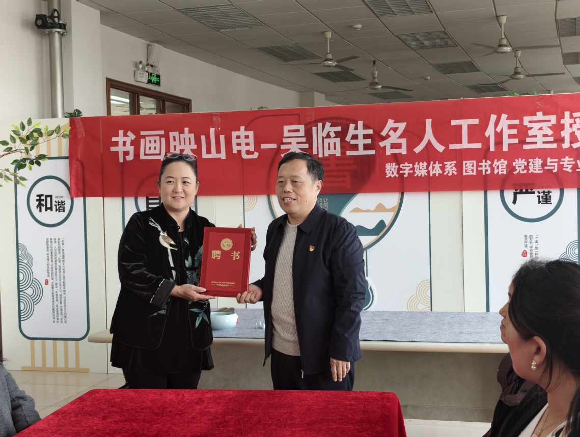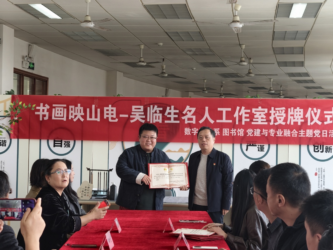 11月6日,“书画映山电——吴临生名人工作室”授牌仪式在学校图书馆举行。山东省开明画院常务副院长张修佳,画家赵凡、陈法,山东省开明画院理事、赖墨园书画院院长吴临生,学校党委委员、纪委书记柏一星,数字媒体系及图书馆相关负责人,师生代表参加仪式。