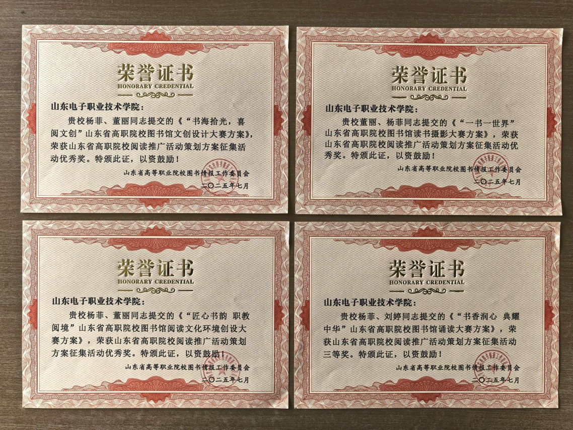 近日,山东省高职院校阅读推广活动策划方案征集活动评选结果公布,我校图书馆荣获三等奖1项、优秀奖3项,表现突出。本次活动由山东省高等职业院校图书情报工作委员会主办,旨在营造全省高职院校阅读氛围,激发师生阅读热情,推动职业教育实现内涵式高质量发展。