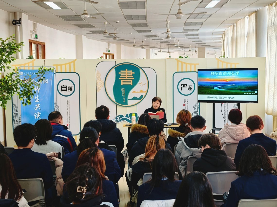 在共读环节中,四位学生代表的朗读让文字焕发生机。商务管理系赵晗煜读“额尔古纳河清晨”,用诗意语言勾勒出自然的宁静;数字媒体系韩金洋读“大兴安岭四季”,以山的“性格”比喻族人的坚韧;财经金融系张容嘉读“驯鹿与人的关系”,展现出游牧民族与自然共生的智慧;数字媒体系侯可读“下山与重返”,通过具体抉择凸显出文化坚守的艰难。