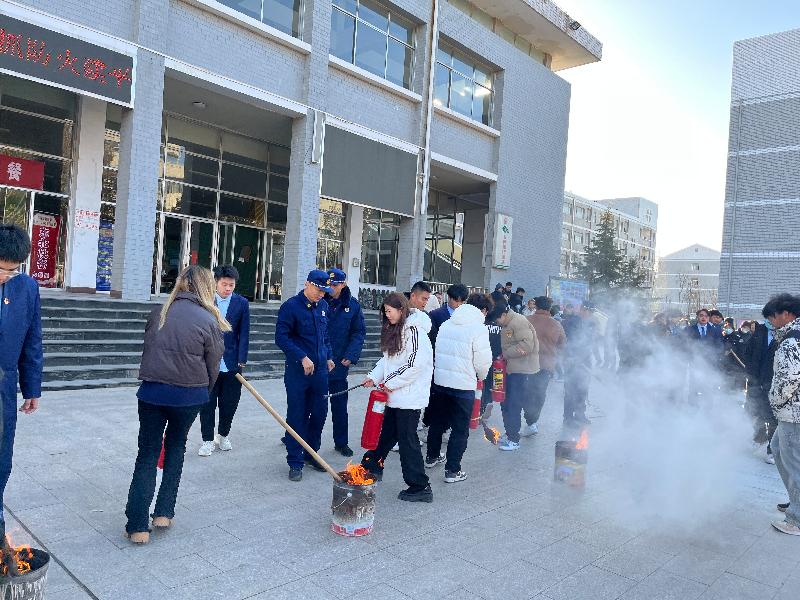 为进一步加强学校的消防安全意识,有效提高防火、灭火及自救逃生能力,营造良好的消防安全环境,在“119消防宣传月”尾声之际,学院邀请章丘大队对全校师生开展消防安全知识培训及演练。