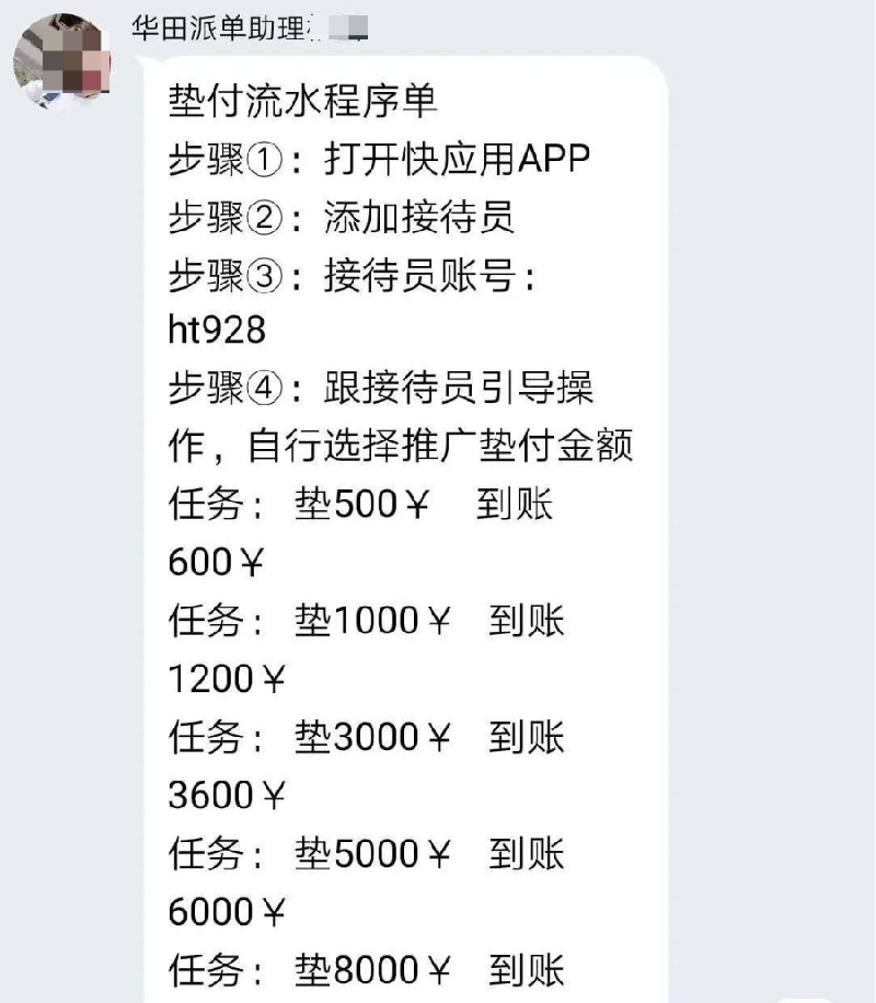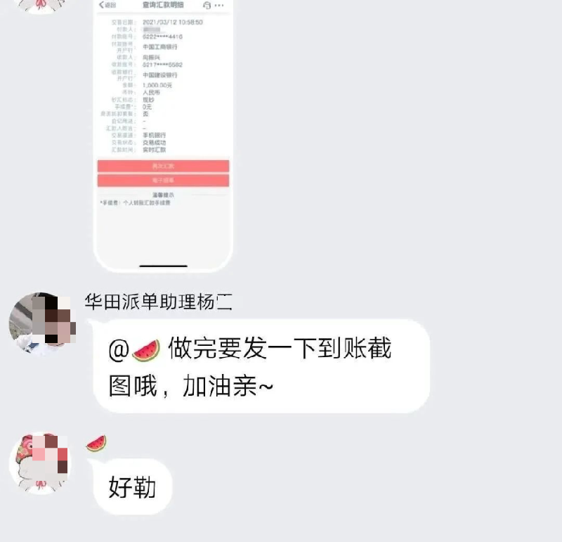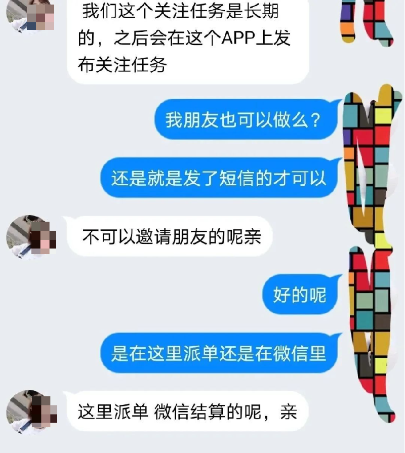 群里有人发红包做任务,即关注某个公众号,赚取佣金,并且将佣金红包截图发到群里, 引诱没有做任务的人上钩。