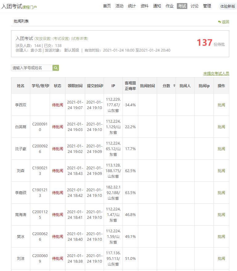 本次团课考试进一步检验了同学们对共青团基本知识的了解同时进一步增强社会责任感和历史使命感。希望他们平时能够把团知识进行收集和积累争取早日成为一名光荣的共青团员。