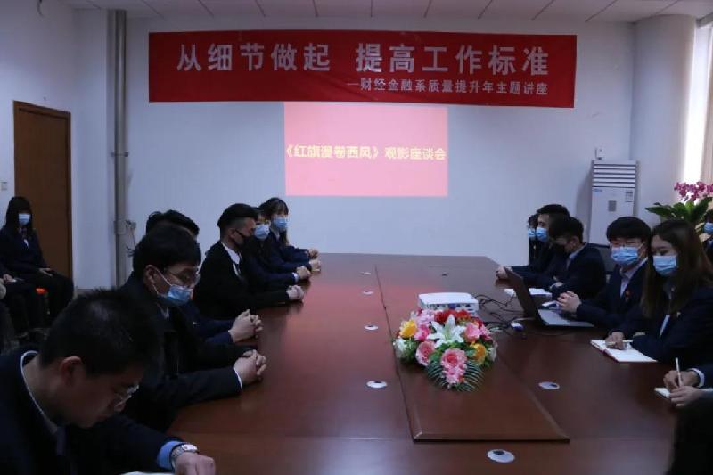为贯彻落实习近平新时代中国特色社会主义思想和党的十九大精神,深入学习习近平总书记关于“用党的历史教育党员、教育干部、教育群众尤其是教育青少年”的重要讲话精神,3月5日下午,财经金融系在综合楼401召开《红旗漫卷西风》观影座谈会,会议由纪肖肖老师主持,团总支书记李莹、辅导员老师及全体团学干部参加。