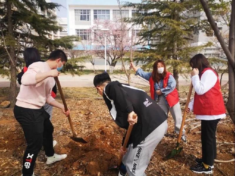 春风催新绿,植树正当时。为弘扬劳动精神,培养学生的劳动意识,为校园添绿,为环保出力,同时结合财经金融系“传承雷锋精神,凝聚奋进力量”大接龙活动,3月24日,财经金融系团总支书记李莹带领红色服务队在图书办公楼西侧柿子林开展义务植树实践活动。