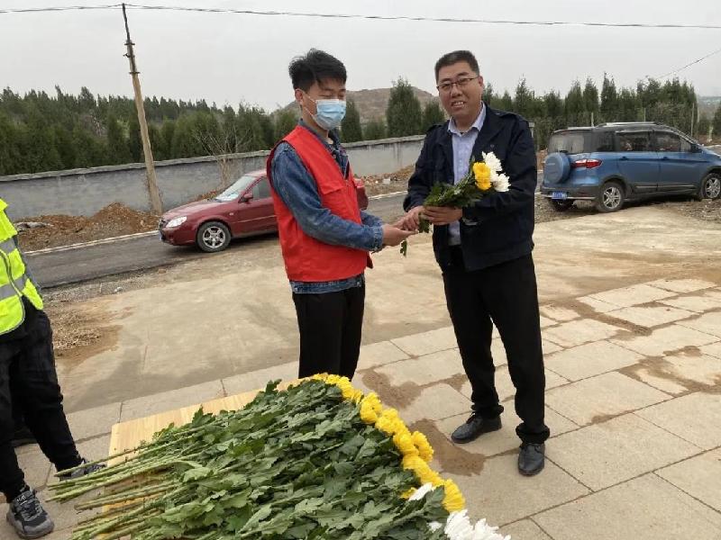 受冷空气影响,气温骤降了十几度,但是红色先锋队的志愿者们依然准时到岗,坚守岗位。他们统一穿着红色马甲,四人一组在公墓的四个入口处开展劝导、宣传和服务工作,劝导村民在祭祀先人时用鲜花替代烧纸,耐心宣传绿色清明、文明祭祀的环保理念。中午时分,风雨交加伴随着降温来袭,纪肖肖带领学生志愿者们打着雨伞坚持服务,全天累计志愿服务共100余人次。本次志愿服务获得了章丘区明水街道和章丘爱心协会的高度肯定,志愿者们不惧严寒,风雨无阻,始终如一,坚守岗位,圆满完成了任务,为广大村民营造安全、和谐、有序的拜祭环境。