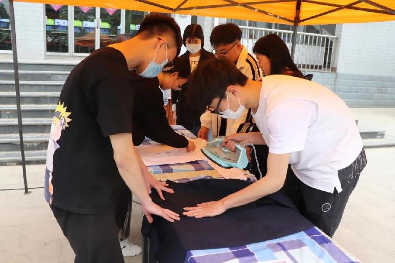 为更好地服务同学,把党史学习教育同解决实际问题有机结合起来,4月20日,财经金融系红色服务队在餐厅门口开展“我为同学做件事”熨衣志愿服务活动。