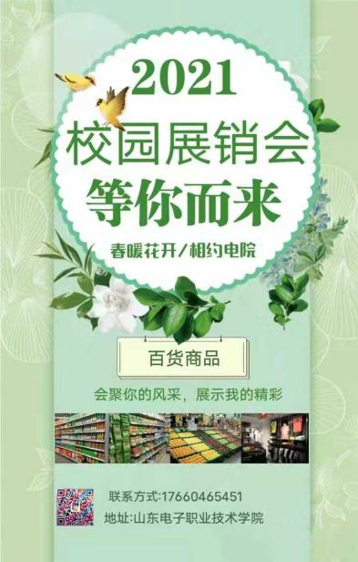 由会展策划与管理、市场营销为主的现代服务与管理专业群联手打造的2021届生活用品校园展将在4月27日下午盛大开幕。本次展会以“汇聚你的风采,展示我的精彩”为主题。此次校园展会是我系专业社团活动一大亮点,是以专业群进行联合实训的有效尝试。此次活动由会展学社负责组展,2019届同学组成导师团队协助2020届同学开展本届校园展。
