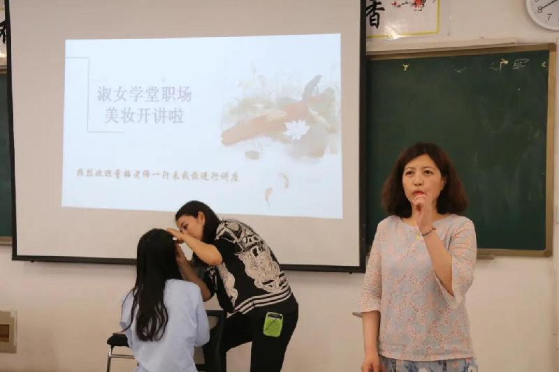 首先董梅老师为我们讲述了化妆的重要性,紧接着按照化妆的步骤为我们详细的解说了在不同的场合应该画什么样的妆容,以及如何拥有一个完美的妆容。其中,还邀请了两位同学上台展示了自己的化妆技术,为了更好的让我们懂得化妆技巧,董梅老师在她们的基础妆容上进行了修改和调整,使得她们的妆容更加完美、得体(符合气质)。这节课的最后,让同学们随机提了三个问题,并给我们进行了细致的解答。