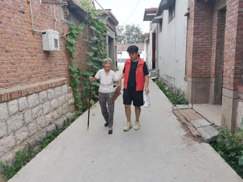 讲座结束后,“三下乡”队员送年迈的老奶奶回家并帮助昨天走访的贫困户打扫卫生。