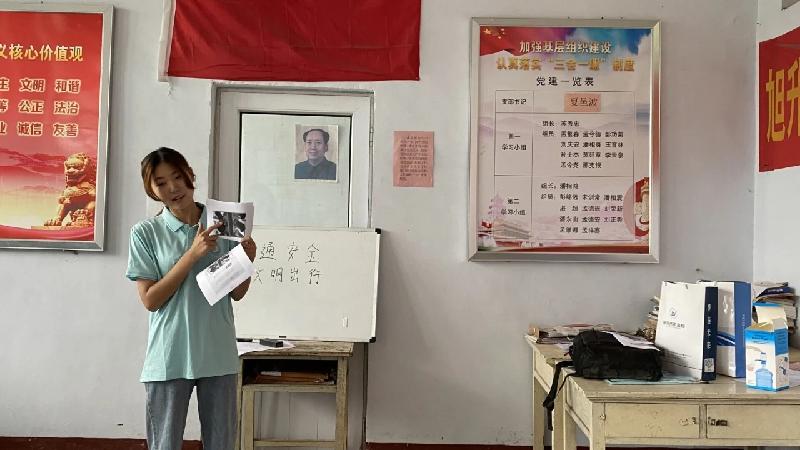 为了增强儿童的食品安全意识和护理急救常识,提高孩子们文明交通、安全出行意识,7月9日上午,“财经e友”暑期“三下乡”社会实践服务队为旭升村儿童讲解食品安全、交通安全和护理急救等方面的知识。