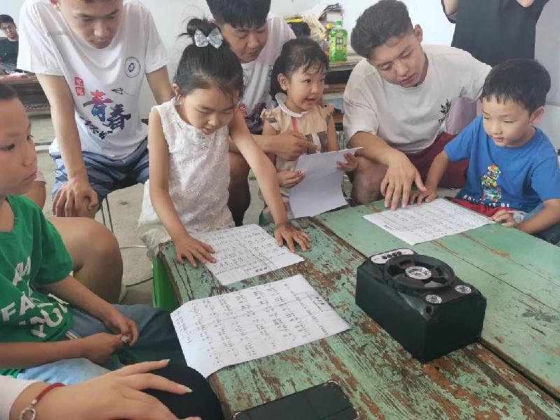 一首《红星歌》,旋律美妙而高昂,气势雄浑而磅礴。“三下乡”队员们一个个化身为红歌“小老师”,从开嗓到识谱,再到一遍遍地教唱,孩子们的歌声悠扬,悦耳动听,孩子们练得很认真、唱的也很开心。传唱红色歌曲,弘扬了爱国主旋律,增进了孩子们爱党爱国爱社会主义情感,也让孩子们对传统文化更加喜爱。