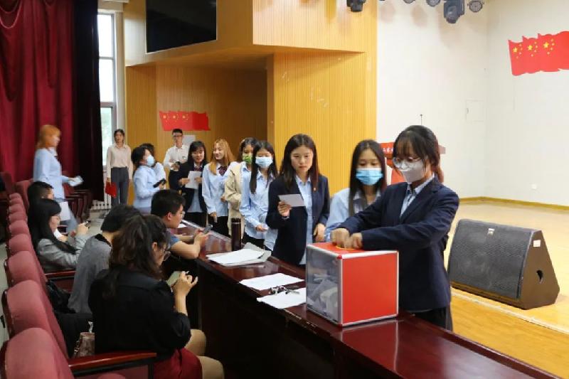 9月28日下午,财经金融系第五次团学代表大会在学术报告厅召开。大会主要审议并通过了第四届学生委员会工作报告,投票选举第五届团学生委员会。系党总支书记齐学民、团总支书记李莹、全体辅导员老师出席,第四届学生委员会全体委员及183名学生代表参加,会议由第四届学生委员会秘书长王凤仪主持。