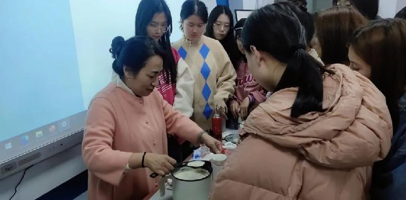 最后,在课程即将结束张蕾老师亲自熬制了奶茶,并分发给同学们品尝,气氛越来越热烈。通过这次茶文化的学习,我们学到的不仅仅有茶还有礼,通过理论与实践相结合,在张蕾老师的教学下 ,我们对茶文化有了更深层次的了解。