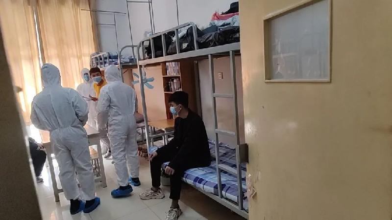 本次演练共设置了学生在课堂体温异常、学生在宿舍内体温异常两个突发情况处置情境,先后在教学区3115、宿舍楼8312进行演练,模拟展示了教师、辅导员、工作人员在体温异常上报、体温监测、消毒、留观等环节及人员体温异常情况下的应急处置程序。