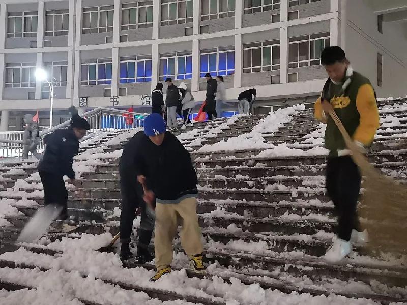 青春动起来,校园有力量。同学们主动伸出双手,齐心协力,爱护家园,为共同做好低温暴雪天气防范应对工作贡献青春力量!