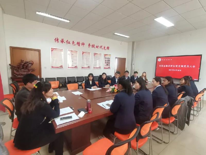 为了切实加强基层党组织建设,2021年11月10日上午9点,财经金融系学生党支部在综合楼401召开支部党员大会,讨论接收任真等13名同志为预备党员的相关事宜,财经金融系党总支书记齐学民出席会议。