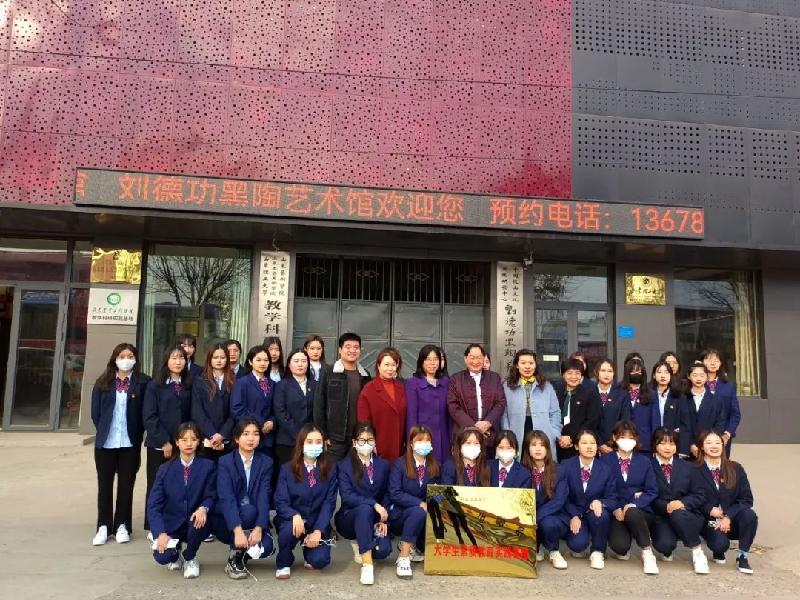 2021年12月9日,财经金融系大学生素质教育实践基地挂牌仪式在章丘龙山刘德功黑陶艺术馆隆重举行。省非遗项目龙山黑陶制作技艺代表性传承人刘德功、黑陶艺术馆经理胡新苗,财经金融系主任董红、团总支书记李莹出席了活动,双方相关部门负责人及财经金融系师生代表共同见证了这一喜庆时刻。