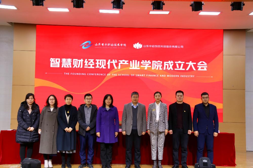 为贯彻落实《国家职业教育改革实施方案》等政策文件要求,深入推进职业院校混合所有制改革,发挥企业重要办学主体作用,激发职业院校办学活力,山东电子职业技术学院与山东中启创优科技股份有限公司,大胆探索,先行先试,在双方共同努力下于12月21日在学术报告厅成功召开了智慧财经现代产业学院成立大会,学院副院长梁会亭,中启创优科技股份有限公司董事长刘国卿、财经金融系主任董红、党总支书记齐学民等相关人员出席本次会议。