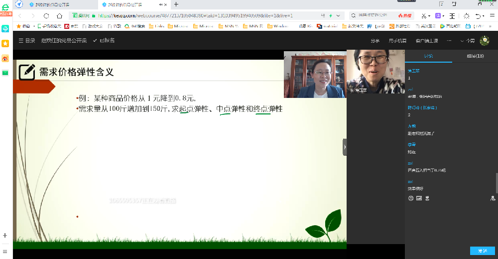 赵老师利用腾讯课堂以《经济学》中需求价格弹性知识点为例向全体党员教师进行现场示范,全体党员教师作为线上学生,以学生视角体验教学过程中学生的真实感受。赵老师在讲解过程中非常注重与学生的互动交流。在讲解到重点知识点,提醒学生随后会有针对性练习以便提高学生注意力;紧接着,赵老师以弧形需求价格弹性计算为例,将全部学生分为三组,分别计算以起点、中点、终点进行计算弹性系数,并通过音频、视频形式连线学生进行解答,注重与学生互动,及时了解学生掌握情况。随后,赵老师针对知识点的具体应用进行深入浅出地讲解,将实际授课内容与课程思政相结合,将家国情怀、社会主义核心价值观融于实际教学中,适时地对学生进行爱国主义教育。赵老师的线上视频示范课有利于老师们换位思考,启发老师们该如何组织课堂,更好的调动学生学习积极性。