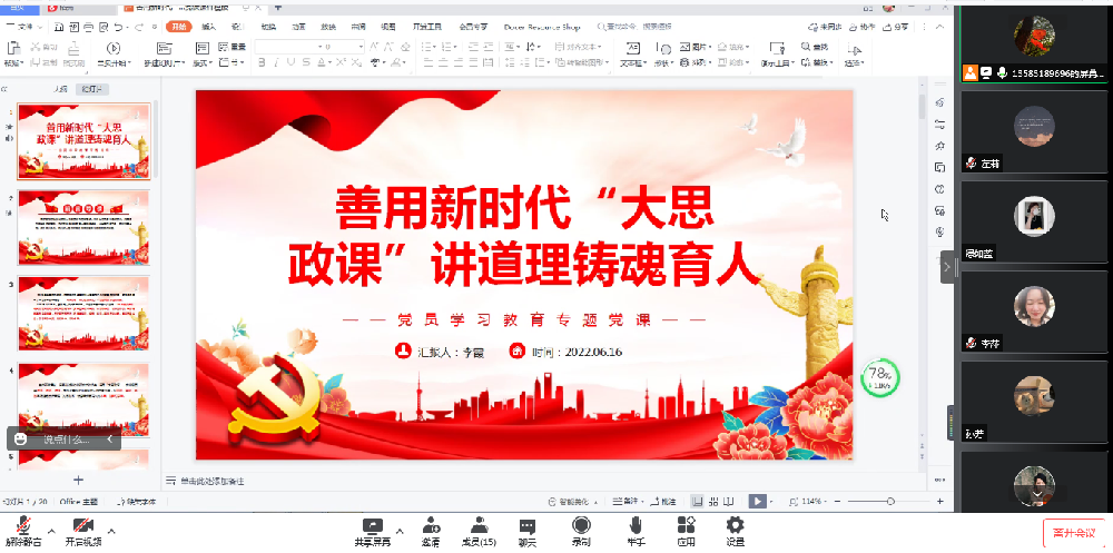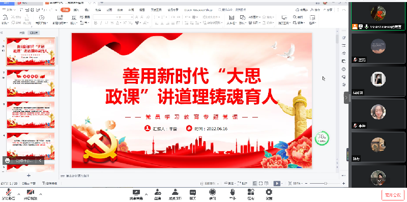 为深入推进“全员育人、全过程育人、全方位育人”,把立德树人根本任务进一步贯穿到思想政治教育教学的全过程,6月16日下午,财经金融系教师党支部书记李霞采用腾讯会议以“善用新时代‘大思政课’讲道理铸魂育人”为题讲授党课。