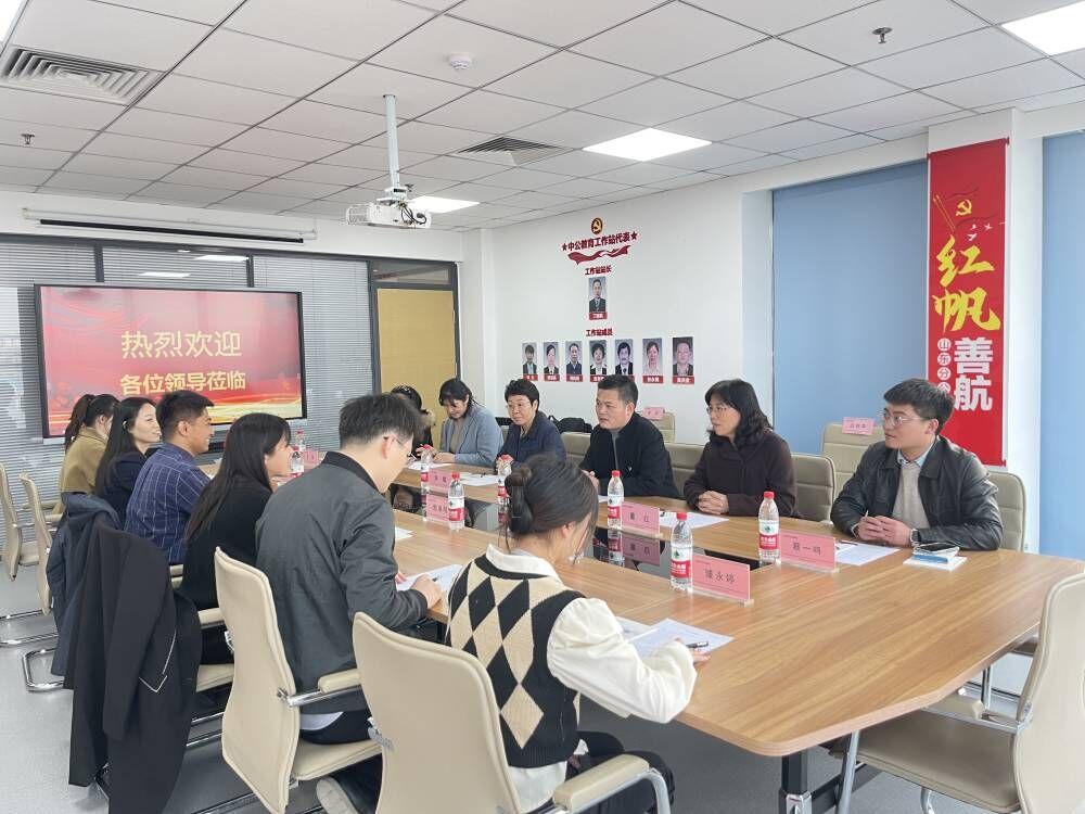 企业方首先安排学校师生分组座谈。老师们走进学生中间,进行了面对面交流,切实了解学生生活、实习等各方面情况,征求学生对实习工作的意见与建议,嘱咐学生要努力工作,服从公司安排,遵守实习纪律,注意自身安全。学生们也畅所欲言,向老师们详细汇报了实习中的工作和生活,脸上个个洋溢着青春的笑容。随后,中公教育山东分公司党委副书记路吉庆带领大家参观了公司的党建展览厅,介绍了公司“1+6”特色党建工作模式。