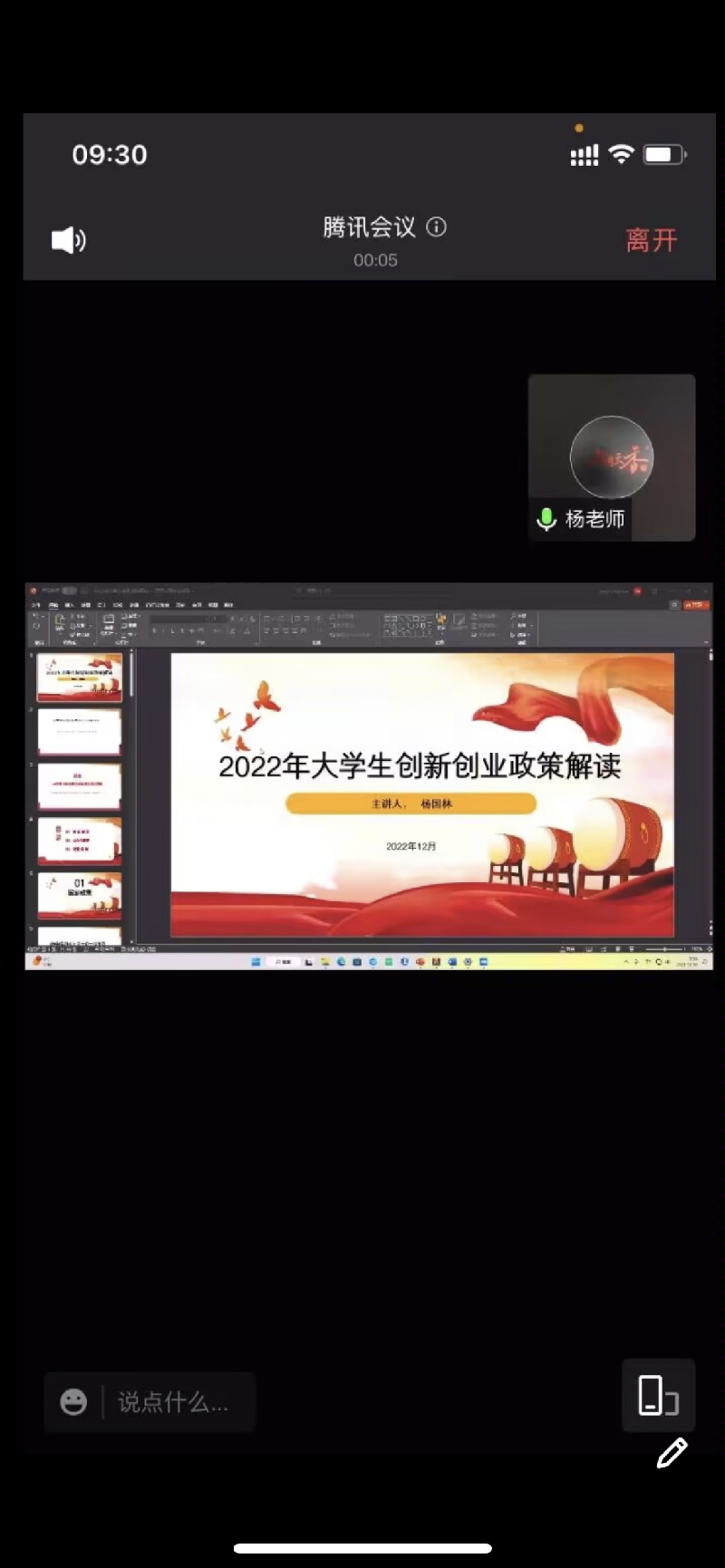 创新创业教育是大学生素质教育的重要内容,也是大学生顺利就业、走向社会的关键环节。为引导学生正确认识和把握当前的就业形势,树立正确的价值观、就业观,增强建设祖国、服务社会的责任感,近日,财经金融系邀请招生与就业指导处处长杨国林通过线上方式为2020级全体学生开展“2022年大学生创新创业政策解读”讲座。