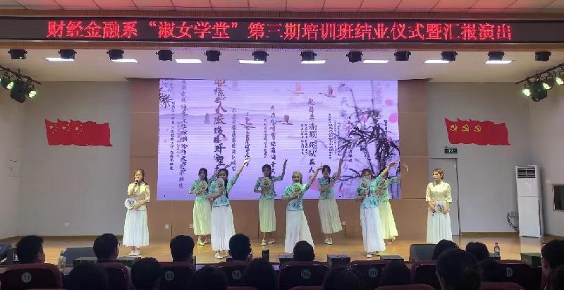 为提高女大学生的艺术素养和综合素质,展示女性的风采与魅力,6月20日下午,财经金融系在学术报告厅举办了“淑女学堂”第三期结业仪式暨汇报演出,院长张训华出席活动,办公室、组织人事处、宣传统战部、学生工作处及各系部负责人一同观看了演出。