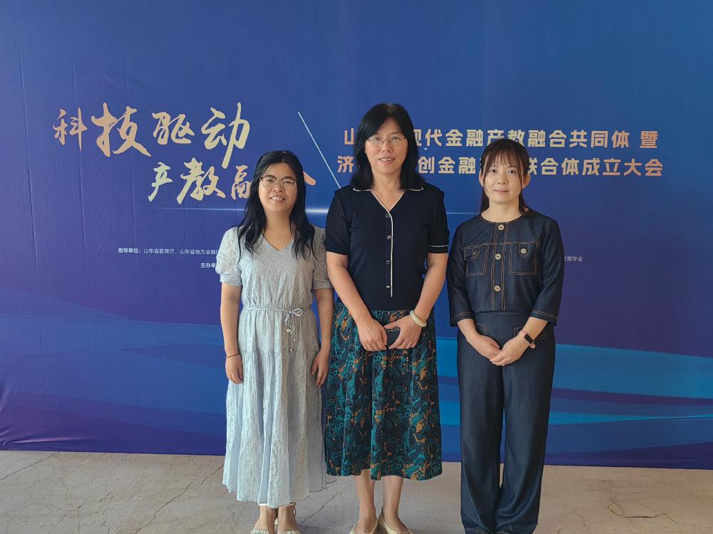 2023年9月7日,山东省现代金融产教融合共同体暨济南市科创金融产教联合体成立大会在山东政协大厦维景大酒店举行。山东省商业集团有限公司党委常委李林主持成立大会,山东省委教育工委副书记、省教育厅党组副书记、副厅长邢顺峰,中国高等教育学会职业技术教育分会会长周建松,中国建设银行山东省分行党委副书记肖鹏等领导以及来自省内的55所院校、22家企业代表出席了会议。作为理事单位,财经金融系主任董红、金融教研室主任左莉以及专任教师王晓辉应邀参加本次大会。