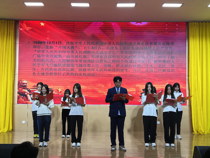 朗诵比赛以班级为单位,参赛选手们紧紧围绕“赓续红色精神,歌咏崭新时代”的主题,进行了精彩生动的演绎。一首激情澎湃的《我的祖国》拉开了比赛的序幕,《党旗颂》《如果信仰有颜色》《续红色之血脉,护华夏之盛世 》。现场选手们或慷慨激昂,或深情款款,或娓娓道来,追溯着党的光辉历史,讴歌着党的奋进历程,赞颂着党的丰功伟绩,饱含深情、催人奋进,博得了在场师生的阵阵掌声。