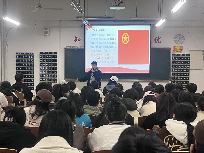 为进一步加强对入团积极分子的培养、教育和考察,财经金融系团总支于11月7日开展了“学无畏精神,绘绚丽华章”主题团课,团总支组织部部长贾少伟主讲。