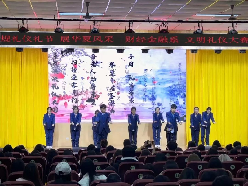 礼仪是中华民族的传统美德,也是体现国民素质的一个重要方面。“不学礼,无以立。”为彰显大学生在形象礼仪方面的青春风采,推进校园文化建设,让同学们更加了解文明礼仪的知识,财经金融系于11月21日在报告厅举办了“规礼仪礼节,展华夏风采”文明礼仪大赛。